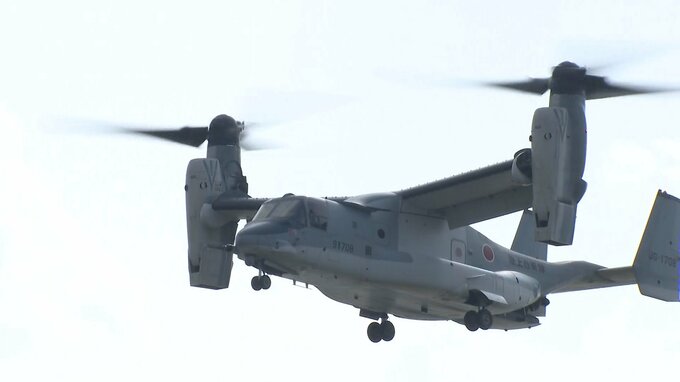 長崎県佐世保市の陸上自衛隊相浦駐屯地に到着した佐賀駐屯地の輸送機「オスプレイ」。