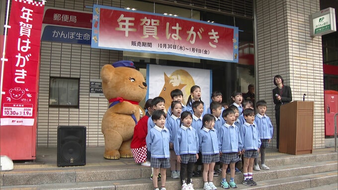 福岡市天神の福岡中央郵便局では30日朝、園児たちが来年用の年賀はがきをPRしました。