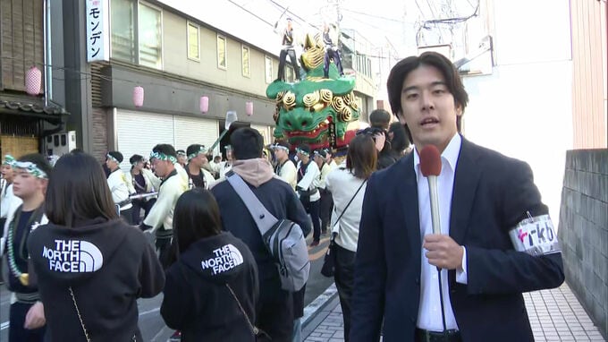 「かけ声とともに、曳山が出てきました。ものすごい迫力です」