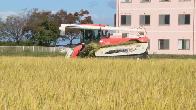 福岡県上毛町で3日、コメの収穫が行われました。
