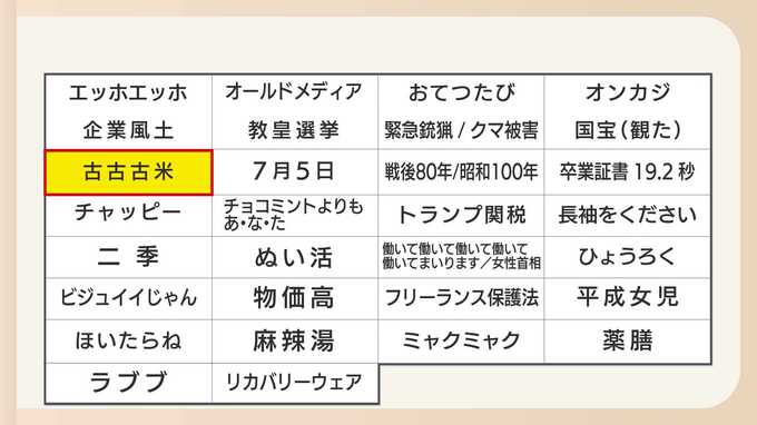 まずは『令和のコメ騒動』とも言われたコメの高騰から「古古古米」がノミネート。