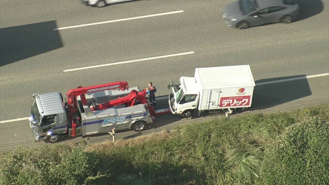 7日午前7時すぎ、九州道下りの太宰府インターからおよそ2キロ先で、2トントラックが10トントラックに追突しました。