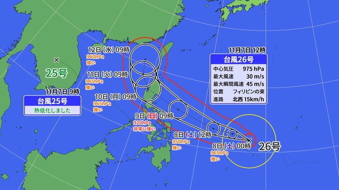 6日に発生した台風26号は、フィリピンの東海上を発達しながら北西方向に進んでいます。
