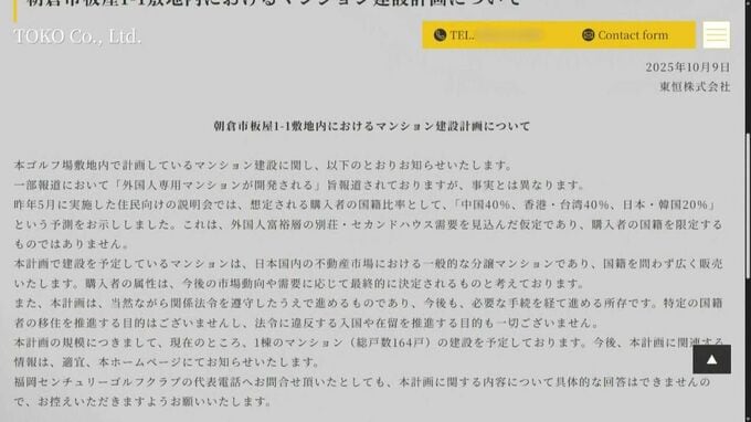 こうした状況を受けてか、開発業者は先月、ホームページで釈明のコメントを出しました。