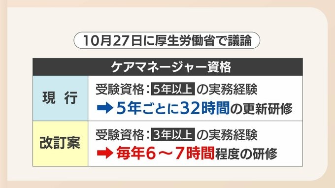 その改訂案として3年以上の実務経験に短縮。毎年6~7時間の研修として、ハードルを下げる方針です。