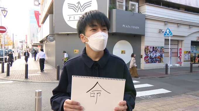 大学生「僕が書いた漢字は<命>です。身近にコロナにかかってしまった人もいて、身近な人と会うこと遊ぶことが全くできなくなって、身内に病気にかかってしまう人もいて。命のありがたさを感謝するきっかけになったので、この漢字にしました。ちょうどワールドカップで最近日本がすごく盛り上がっていたので、来年以降は笑顔があふれる日本になってほしいなと思います」
