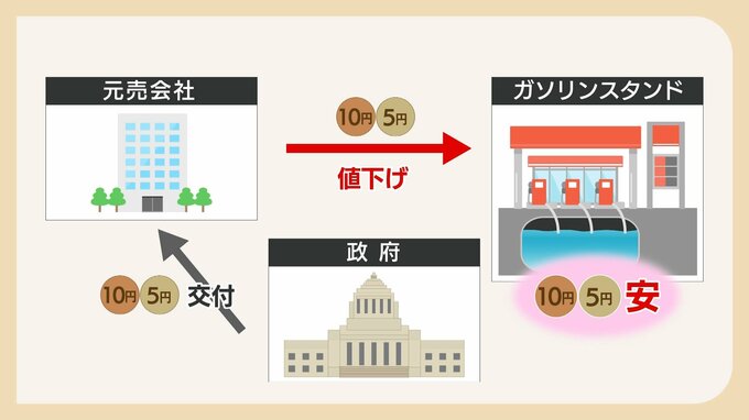 政府はガソリンスタンドではなく、元売り会社に補助金を交付します。