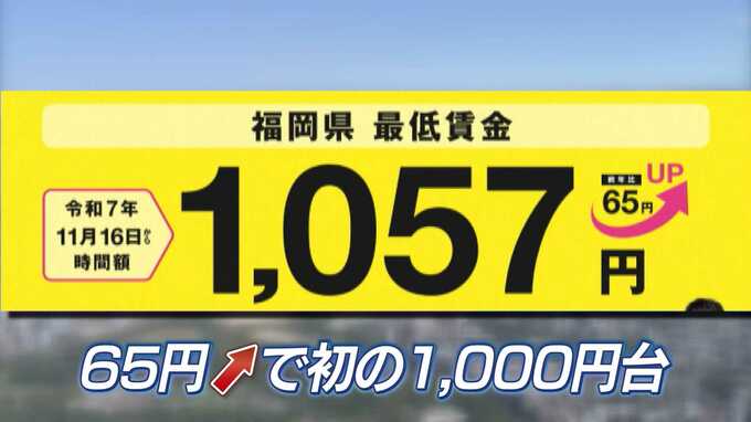 これまでより65円の引き上げとなり福岡県で初めて、時給が1000円の大台を超えます。