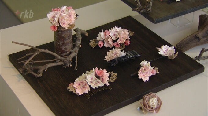 「春」や「蘭」など8つの共通テーマを、博多織作家の荒木希代さんは着物や帯。クリエーターの甲斐ゆきのさんはアクセサリーと、それぞれ異なる技法で表現しています。