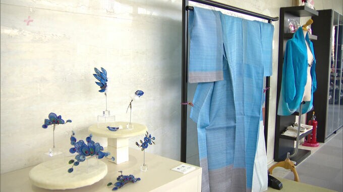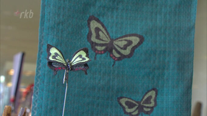 このうち「蝶」をテーマにした作品では、同じ糸を使った同じデザインの蝶を、繊細に織り込んだり、立体的で強度を持たせたアクセサリーに仕上げたりしてコラボしています。
