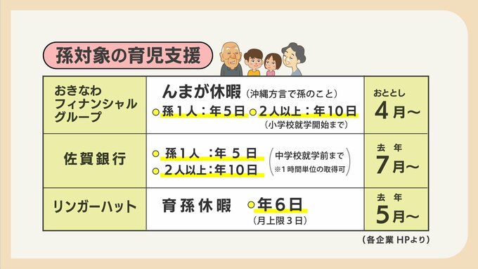 こうした”孫育休暇”。近年、九州でも導入する企業が増えています。