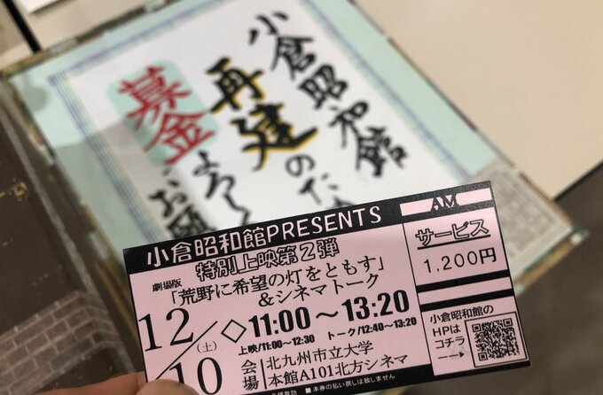 「小倉昭和館」は趣のある映画館で、惜しむ声が本当に多いです。館主の樋口智巳さんは絶望の中から再建を決意、多くの方が支援しています。樋口さんは会場を借りて「小倉昭和館PRESENTS特別上映会」と銘打ち、映画の上映を始めています。第1弾は11月27日にホテルのホールを借りて、活動弁士付き無声映画の上映会を実施しました。