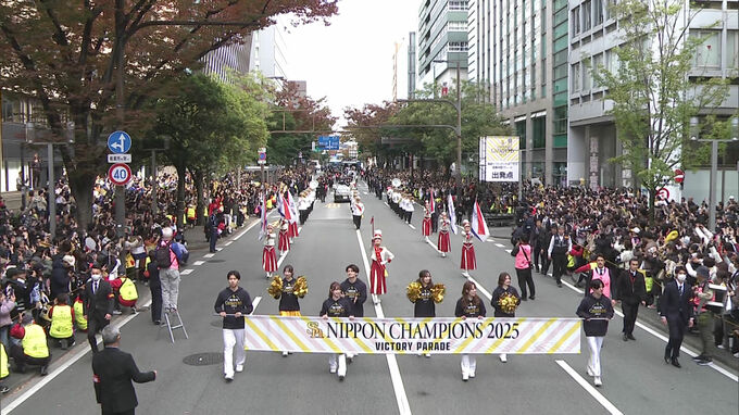 球団によりますと、沿道に集まった観客は去年のパレードより1万人多い29万人で、「日本一」と書かれた旗を振ったり選手の名前を叫んだりしていました。