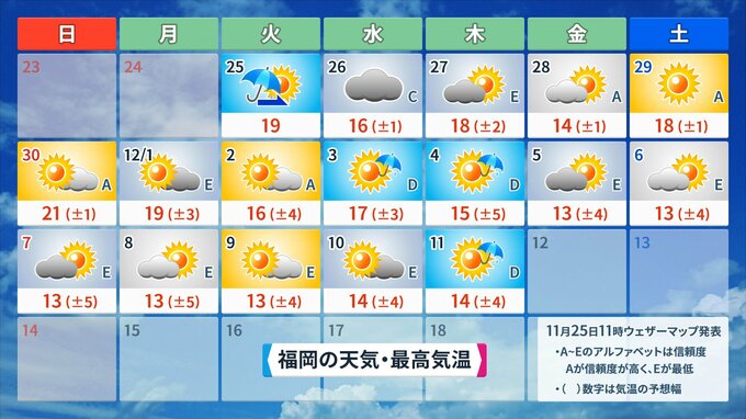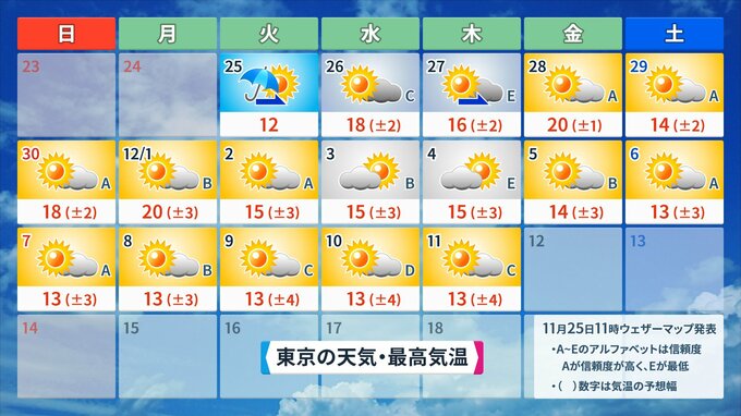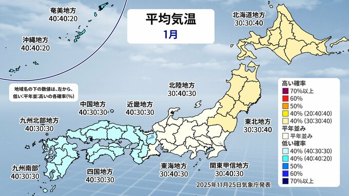 25日、気象庁は12月~来年2月の3か月予報を発表しました。
