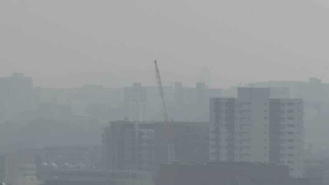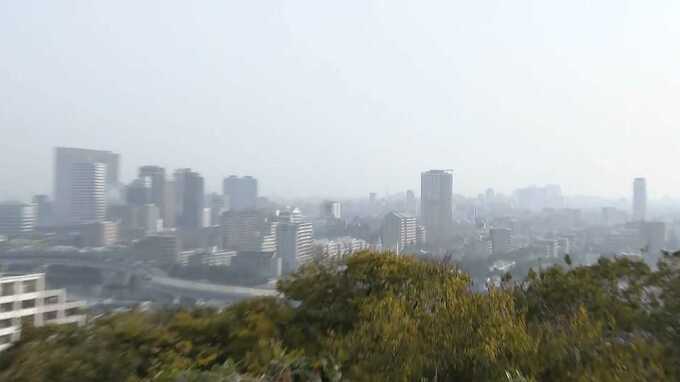 「午前9時過ぎの福岡市内です。空が少し黄色く遠くの方は霞んで見えます」