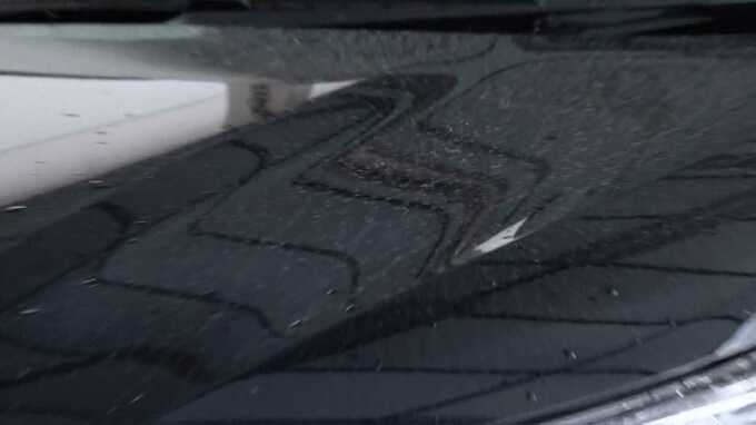 展示された車を見てみるとフロントガラスにも黄砂。そして、ボンネットにも黄砂がついているのがわかります。