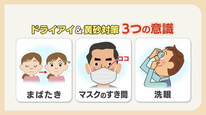 ドライアイと黄砂への対策、意識することを3つ挙げました。