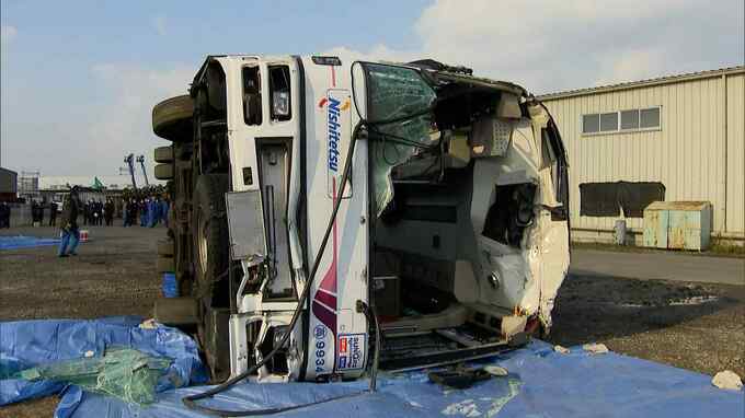 この訓練は、今年8月に名古屋市北区の高速道路で9人が死傷した事故や10月に静岡県小山町で29人が死傷した事故など大型バスの横転事故が続いたことを受け運転士たちの「想定外」を無くすために実施したものです。記者が横転したバスの非常口からの脱出を体験しました。