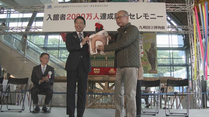 開館20周年を迎えた福岡県太宰府市の九州国立博物館では累計の入館者数が2000万人を突破し、28日記念の式典が開かれました。