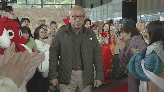 仮装した九州国立博物館のスタッフが拍手で出迎えたのは、2000万人目の入館者となった熊本市に住む田原一臣さんと愛子さん夫婦です。