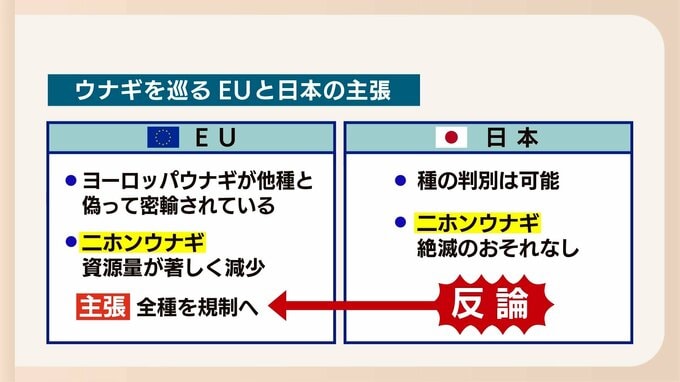 一方、日本は、「ニホンウナギとヨーロッパウナギは特徴で判別可能」で、ニホンウナギは「絶滅の恐れは全くない」と反論。