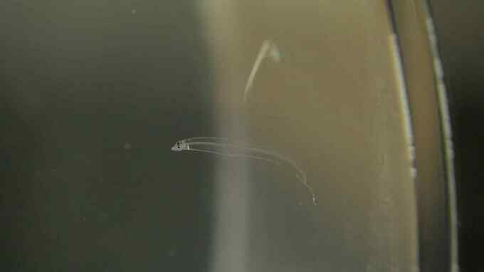 こちらは、「レプトケパルス」と呼ばれるニホンウナギの赤ちゃん。福岡では初めて展示されています。
