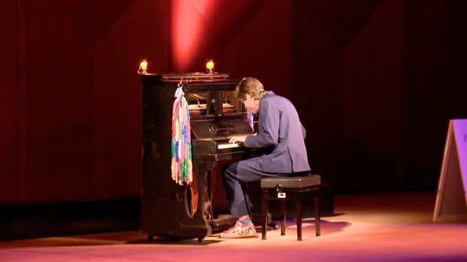 「今から80年前、広島と長崎に原子爆弾が投下されました」「実はこのピアノも80年前、広島市内の中心部の民家にあったんですが、たまたま家が燃えなかったのでこうして残ったと」