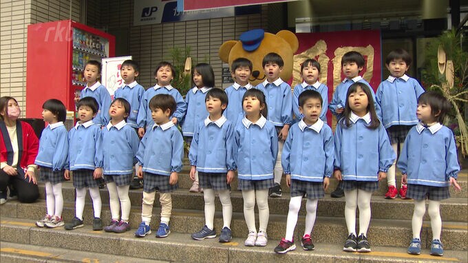 福岡中央郵便局では、保育園児たちが歌などを披露し、年賀状の受け付け開始をPRしました。