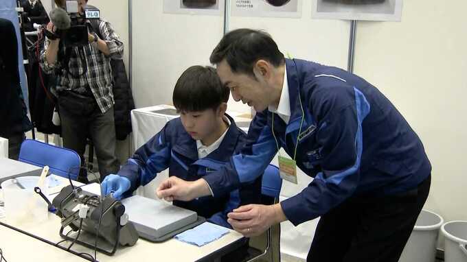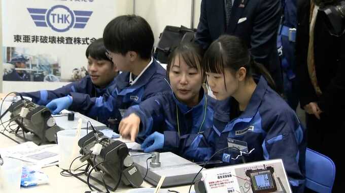 中学生たちが破壊せずに検査をするという不思議な技術に挑戦。超音波を使って、ものの内部に傷がないかを調べる本格的な検査作業を体験しました。
