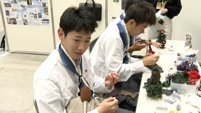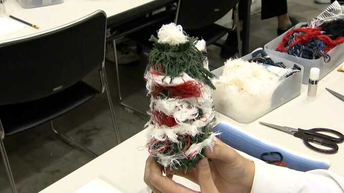 参加者は小倉織について学んだ後、切れ端や残り糸を使って、オリジナルのクリスマスツリーをデザインします。