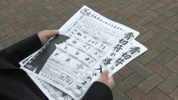 12日午前、北九州市八幡西区で星琳高校の生徒や警察およそ20人が集まり、登校する学生などに自転車の交通ルールを知らせるチラシを配りました。
