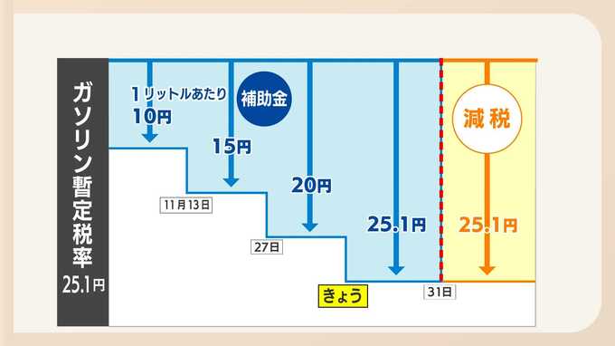 政府は11月13日から段階的に補助金を拡大していて11日からさらに5.1円上乗せされます。