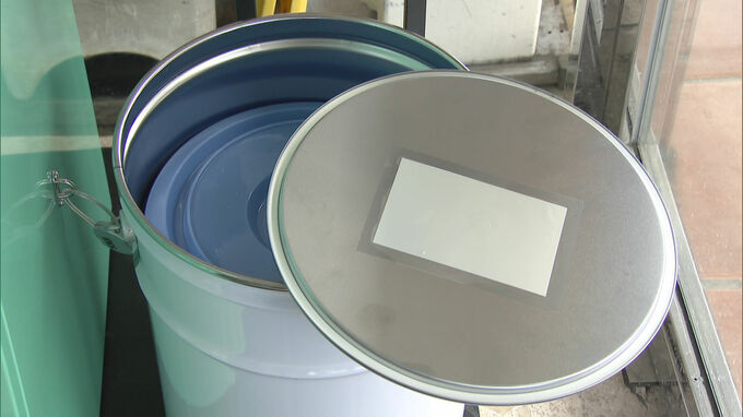 今回、市が設置した回収用の缶には、万が一発火した場合に備え、蓋に消火フィルムが貼られています。