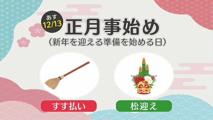 あす12月13日は正月事始め。すす払いや松迎えなど、正月を迎える準備を始める日とされています。