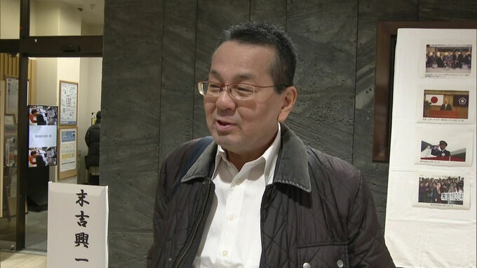 「北九州市役所入ってすぐの場所には、末吉元市長のこれまでを振り返る写真と芳名帳が置かれています」