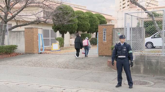 RKB 馬場遼之介記者「校門には警察官が立ち、児童の登校を見守っています」