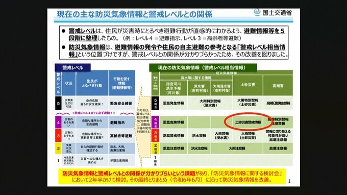 現在の防災気象情報は40種類以上にのぼり、「情報の数が多い」「名称がわかりにくい」といった声が上がっていました。