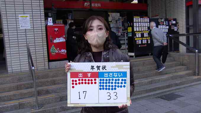 RKB本田奈也花「街の人50人にアンケートをした結果、年賀状を出す人が17人、出さない人が33人と、出さないという人のほうが倍近く多かったです。