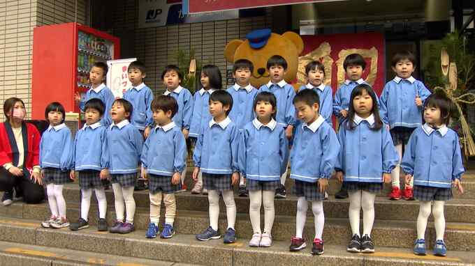 福岡中央郵便局では15日、保育園児たちが歌などを披露し、年賀状の受け付け開始をPRしました。今月25日までに投かんすれば、来年の元日に届くことになっていて、園児たちはおじいちゃんやおばあちゃん、友だちに宛てた年賀状を早速、郵便ポストに投かんしていました。