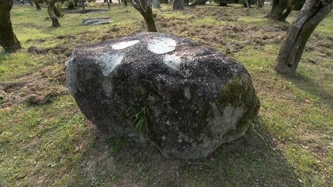 県内の石を使ってつくられたという作品。よく見ると、表面に白くなっている場所があります。