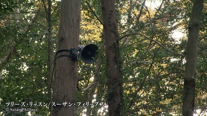 森の中に入ると、メロディーが聞こえてきました。8つのホラ貝の音色です。