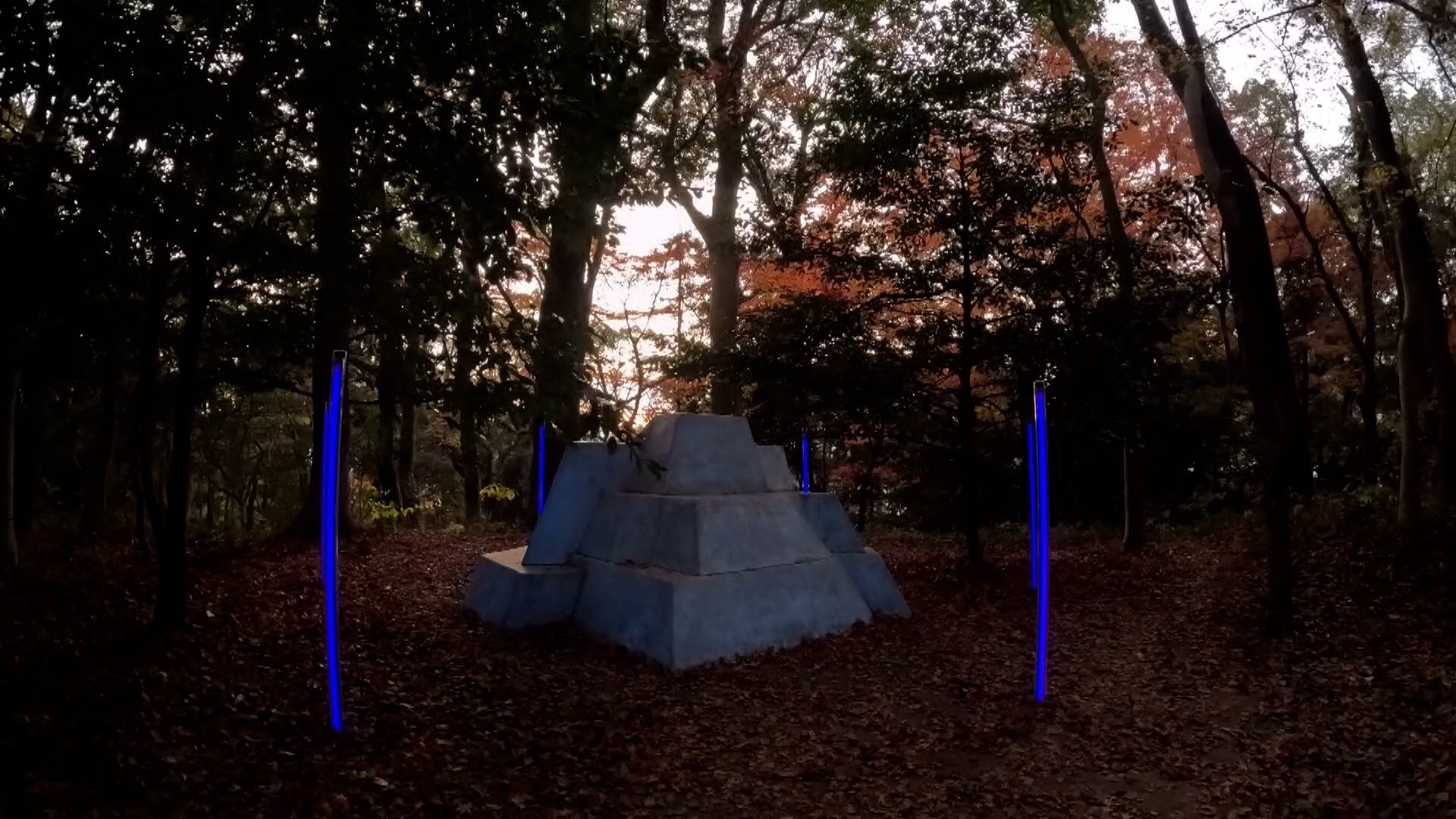 日が暮れると青い光が出現
