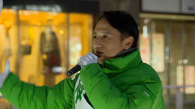 この集会でマイクを握った自民党の大家敏志参議院議員。自民党のある国会議員らが擁立したとされる津森氏を市長選に「出したい人」と表現しました。