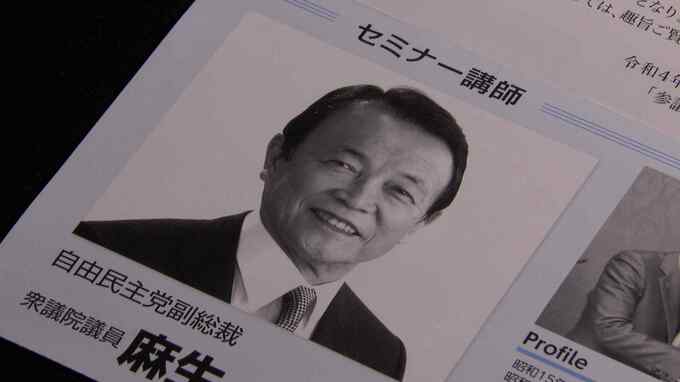 その翌日、津森氏を招いて開かれた大家氏の政治資金パーティー。案内状には大家氏が所属する派閥のトップである麻生太郎・自民党副総裁が講演すると書かれていましたが…。