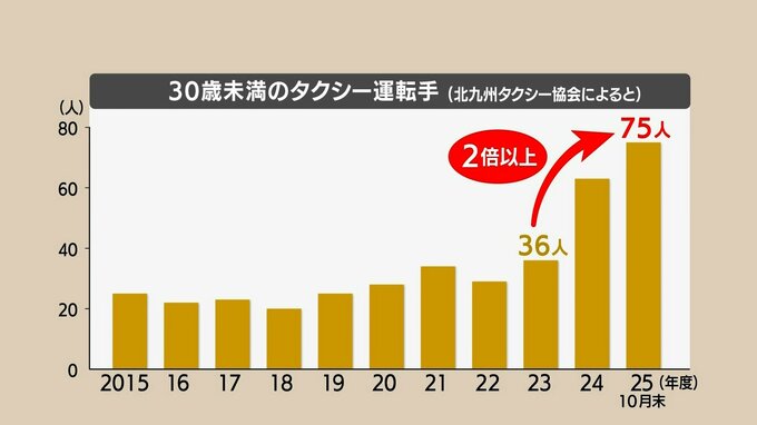 北九州タクシー協会によりますと、北九州地区などに勤務する30歳未満のタクシー運転手はここ数年で急増。
