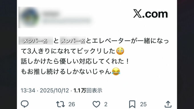 「エレベーターが一緒になって3人きりになれてびっくりした!話しかけたら優しい対応してくれた!もお推し続けるしかないじゃん!」