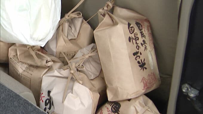 プレゼントの中身は新米やケーキ、それに地元で採れた野菜や果物です。