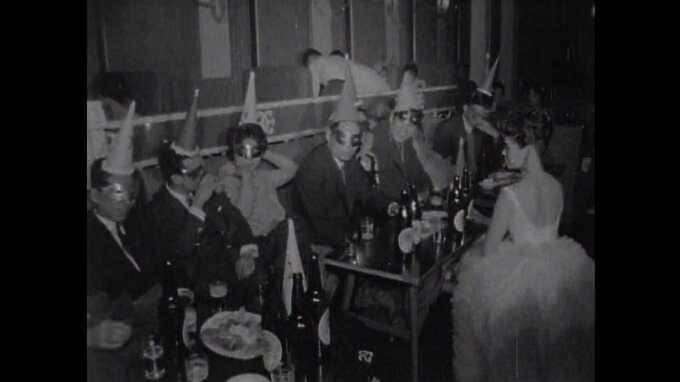 1959年 昭和34年、当時流行していた中洲のキャバレーで男性客が酒を飲んだり踊ったりしています。