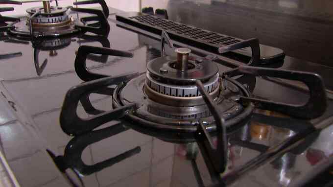 クレンザーで磨いて水を流し、タオルで拭き上げると・・・水アカや石鹸かすも取れてピカピカになりました。一方、油汚れがたまったガスコンロは・・・