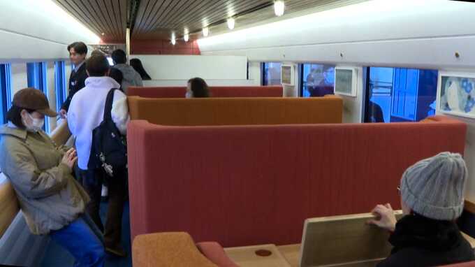 「もう、まじ最高です」1日限りの人気観光列車「かんぱち・いちろく」イベント 3号車にはカフェもオープン JR博多駅 2026年1月6日(火) 17:58 国内 車内を自由に見学できる 1号車と2号車では車内を自由に見学できるとあって訪れた人たちは、列車の美しい内装をカメラに収めたり、実際に座席に座ったりして、思い思いに楽しんでいました。